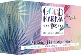 Reconnexion, inspiration, alignement à soi La Good Karma Box vous invite à recevoir un message inspirant et positif au quotidien, ou dès lors que vous en ressentez le besoin. Les cartes sont classées en trois axes : reconnexion, inspiration et alignement à soi. Il vous suffit de vous laisser guider, de tirer une carte et de laisser infuser son message tout au long de votre journée afin d'éveiller des prises de conscience en vous, de dénouer ou d'éclairer ce qui vous bloquait.